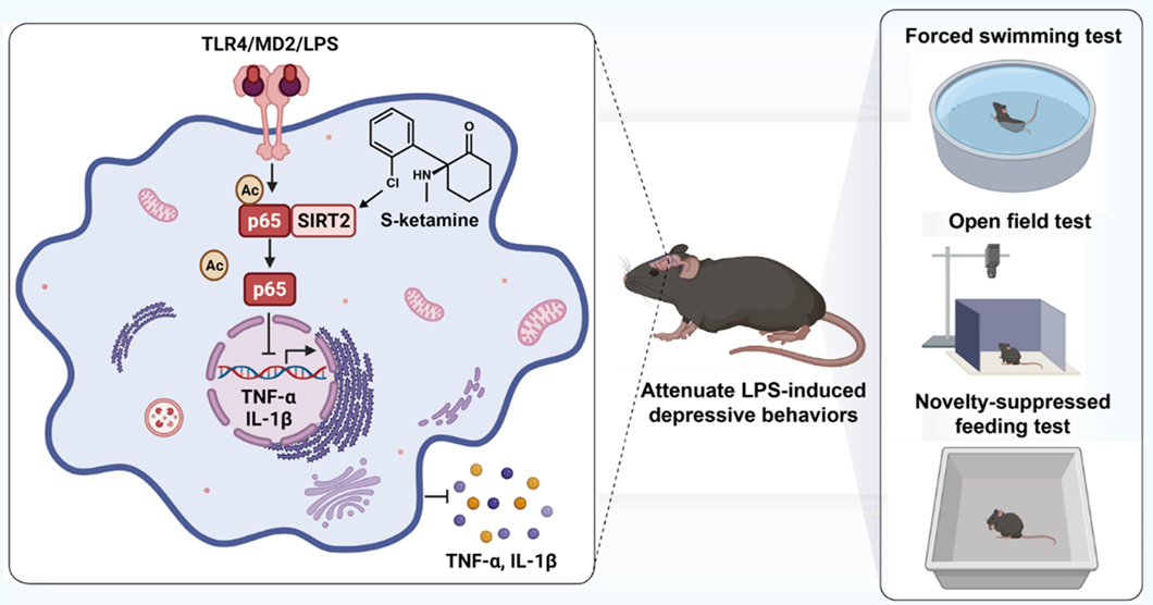 Fig. 1. S-ketamine alleviates neuroinflammation and depressive-like behaviors by directly binding the intracellular target SIRT2.Image by Wang Xiaohui